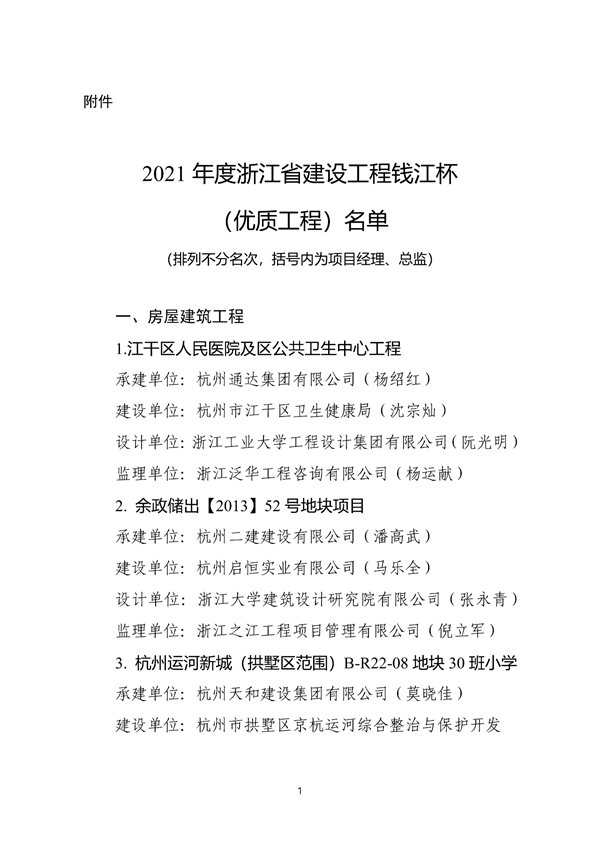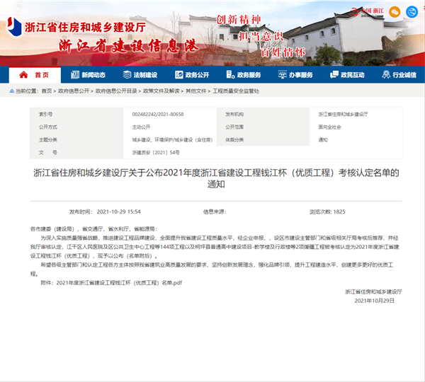 根據(jù)《浙江省住房和城鄉(xiāng)建設(shè)廳關(guān)于公布2021年度浙江省建設(shè)工程錢江杯(優(yōu)質(zhì)工程)考核認(rèn)定名單的通知》,我公司承建的景寧畬族自治縣鳳凰學(xué)校新建工程、麗水二中校園完整工程2個項(xiàng)目榮獲2021年度浙江省建設(shè)工程錢江杯(優(yōu)質(zhì)工程)。錢江杯(優(yōu)質(zhì)工程)是浙江省工程建設(shè)領(lǐng)域的最高質(zhì)量獎項(xiàng),代表了浙江省建筑業(yè)工程質(zhì)量的最高水平。