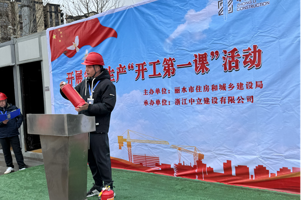 2月23日由麗水市住房和城鄉建設局主辦,浙江中立建設有限公司承辦的“開工第一課”活動在麗水創新金融中心一期項目圓滿舉辦。參加本次活動的有市建設局副局長藍葉培、安監辦副主任王秋芬、施管中心主任呂飛熊、副主任周旭瑾等主管領導,公司總經理鐘鳴,副總經理吳韶斌,安全部及金融中心項目(建設、監理、施工)全體人員,以及公司各在建項目觀摩人員共60余人。本次活動圍繞安全宣講、消防器材使用和疏散逃生講解、疏散演練、警示教育培訓學習、領導宣講以及施工現場隱患排查等多個方面展開。